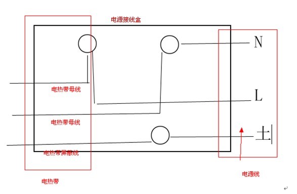 2、2电热带一定要接地,可将电热带屏蔽网与电源接线盒连接,如下图: