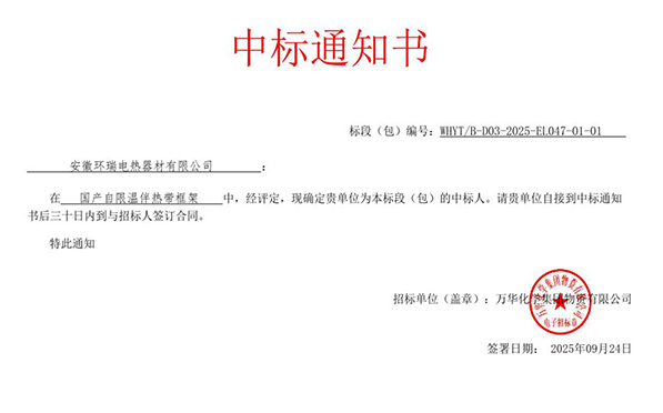 安徽环瑞成功中标万华化学“自限温伴热带框架”项目